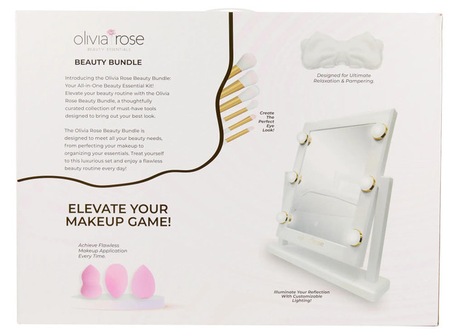 Includes spa headband, beauty blender sponges, makeup brushes and multi purpose organizer