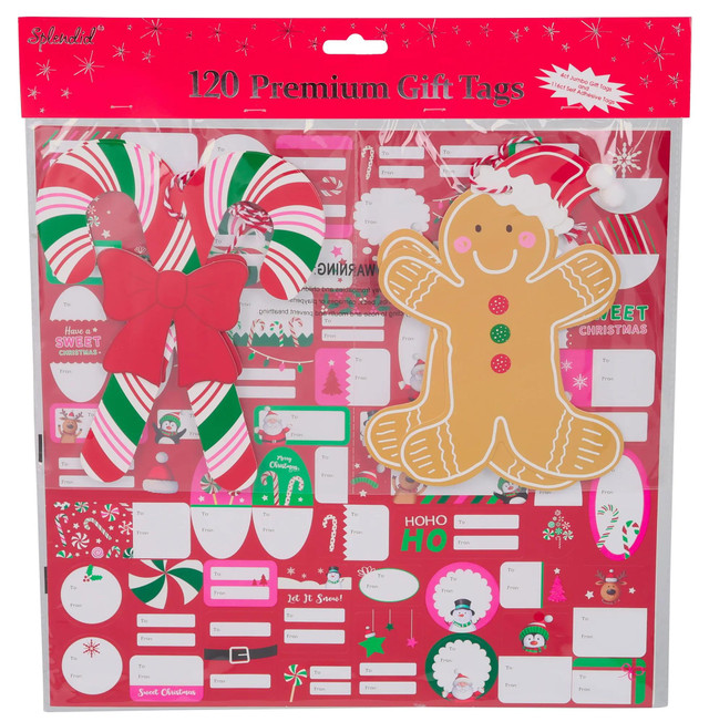 4 Jumbo tags including 2 gingerbread men and 2 candy cane tags