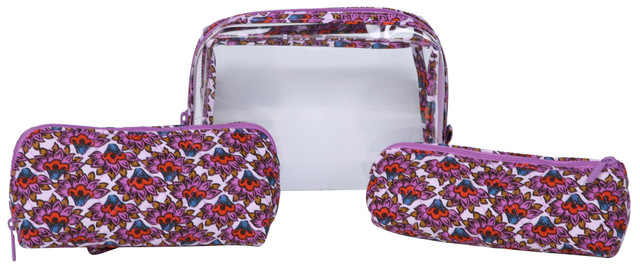 Features one clear cosmetic bag (7.5 in x 3 in x 5.5 in)