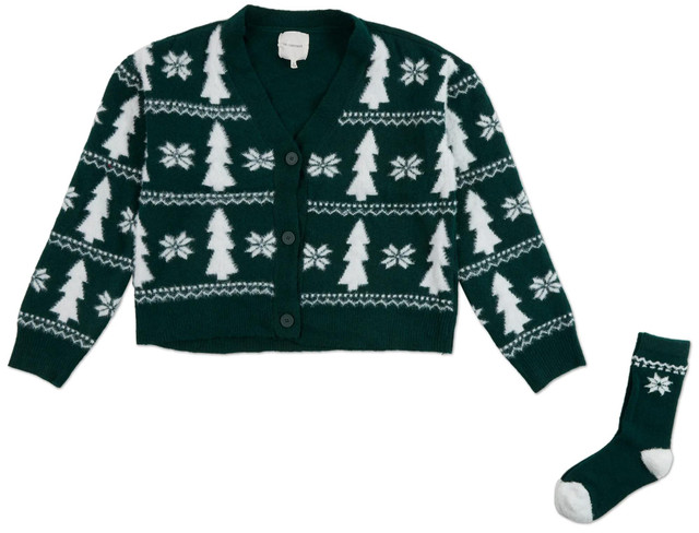 Juniors 2 Pc Holiday Button Down Sweater & Sock Set Bealls