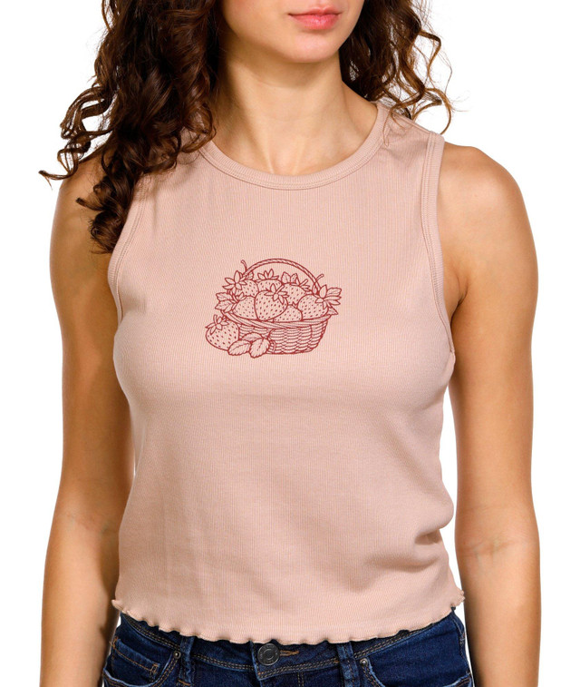 - Embroidered strawberry basket graphic