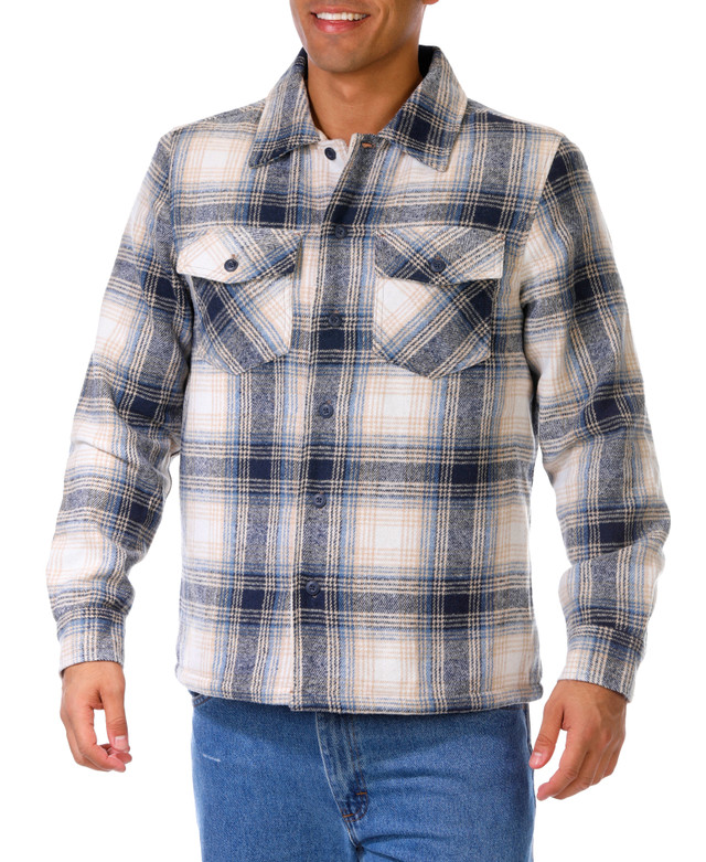 Men's Long Sleeve Button Down Flannel Sherpa Shacket