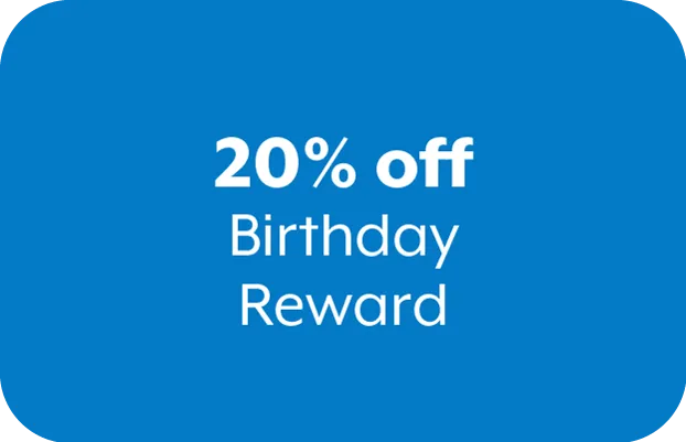 *20% Off Birthday reward good for a single purchase during your birthday month.