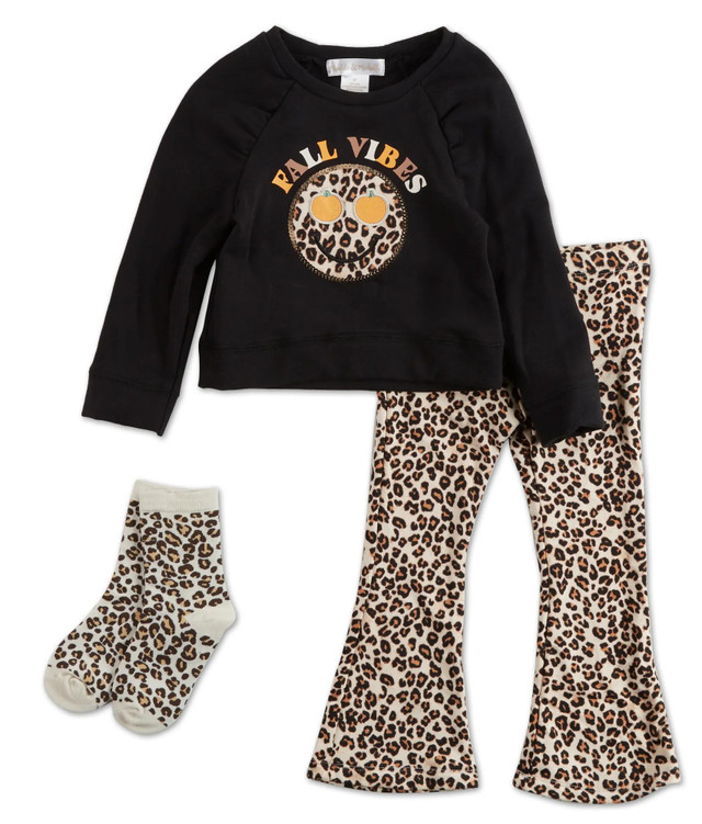 • Features sequin fall happy face with leopard leggings