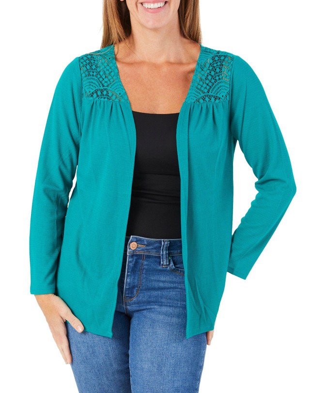Women's Perforated Open Front Cardigan